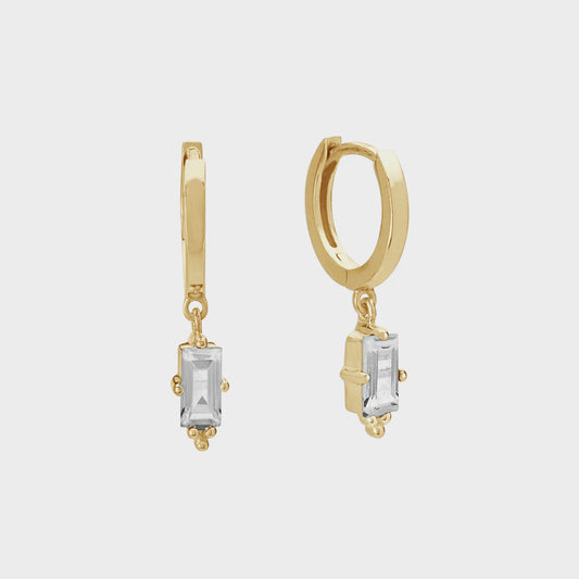 Hanging Baugette Huggies | White Topaz