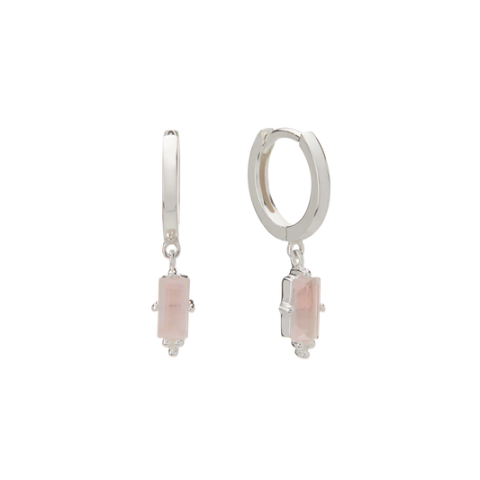 Hanging Baugette Huggies | Rose Quartz