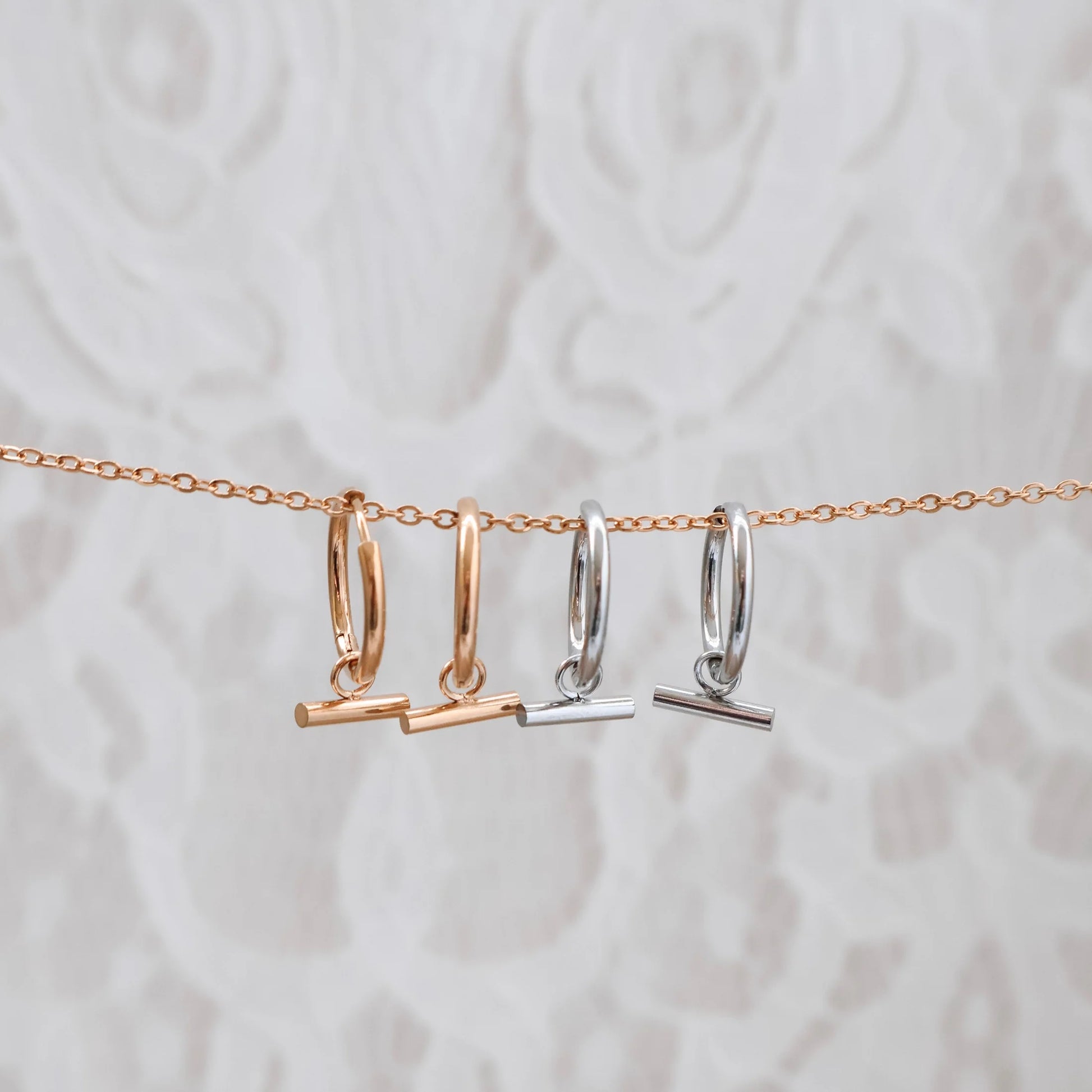 Bar hoop earring which matches in perfectly with our T bar necklaces