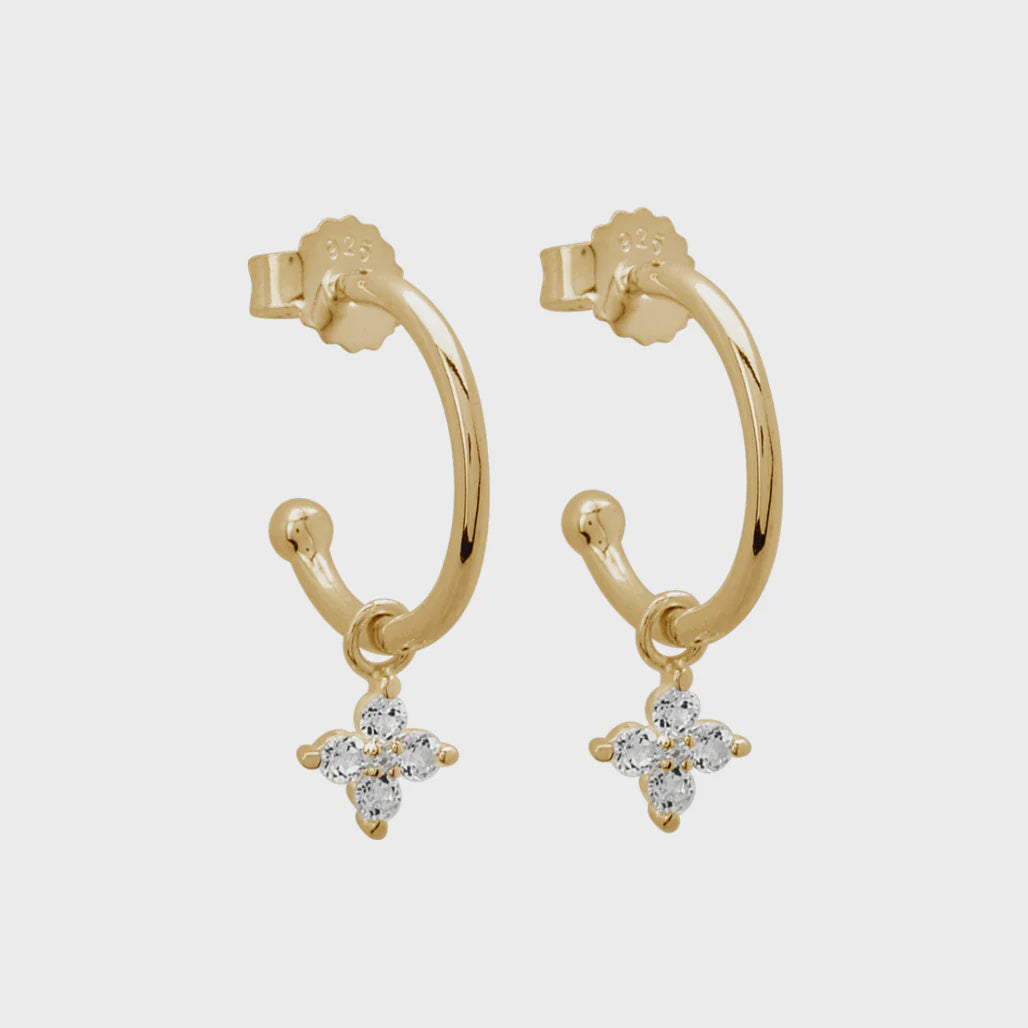 Hoops with hanging clover pendant featuring White Topaz.