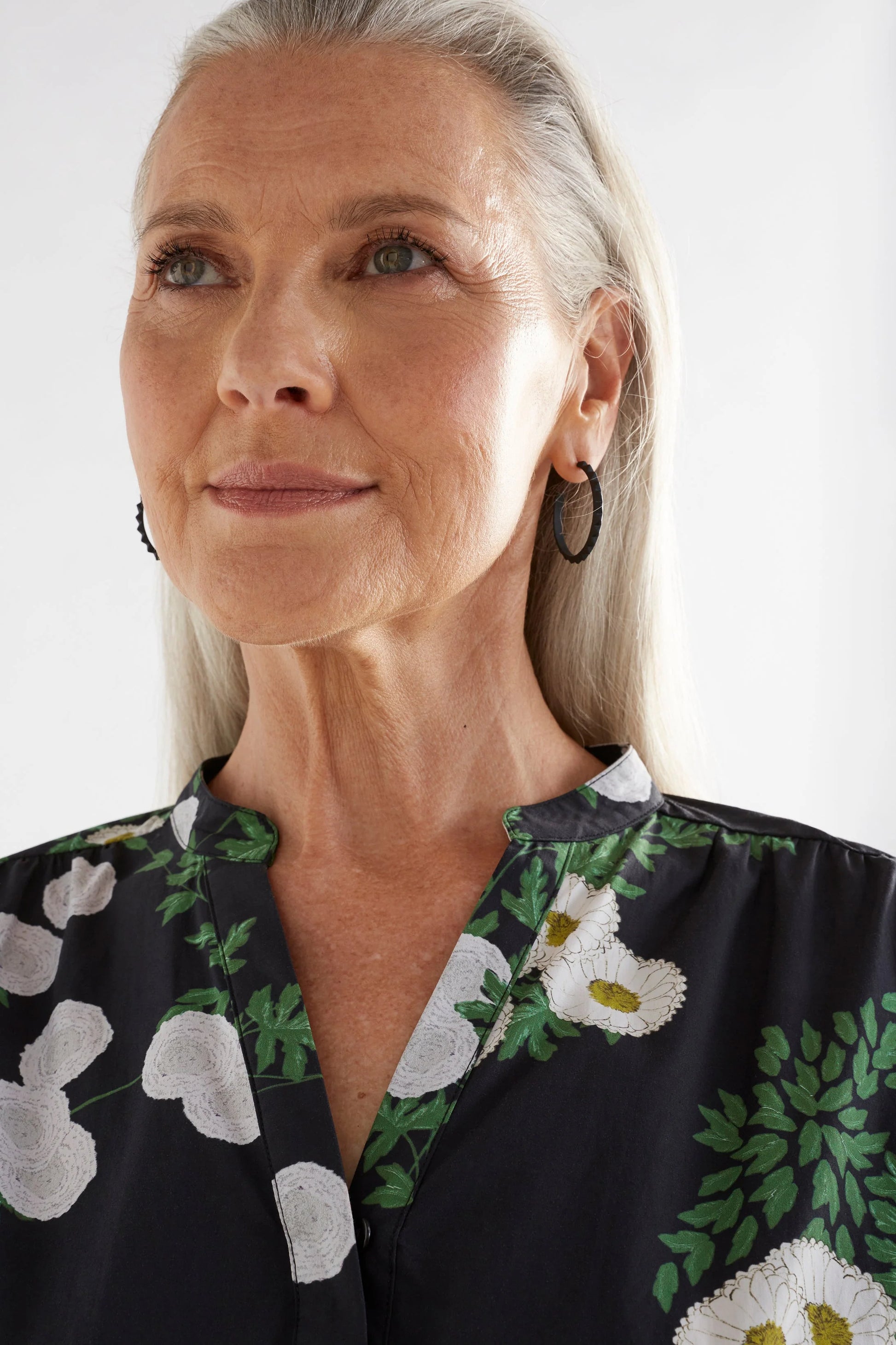 The Aska Hoop Earring is a small, open-hoop style in a rubberised metal finish, with an exterior curved spike detail. The earring comes in four different colourways.