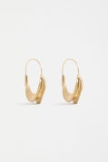 Updated take on our popular Siita earring from S24 but this time in an easy closed-end hoop format -sculptural petal-like shape at base of hoop -comes in Classic Gold and Silver in a brushed metallic finish