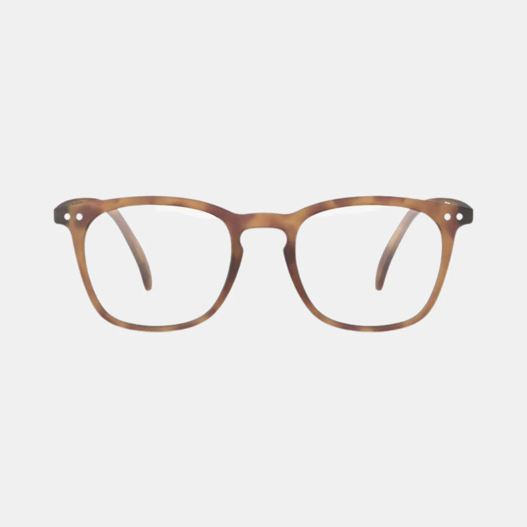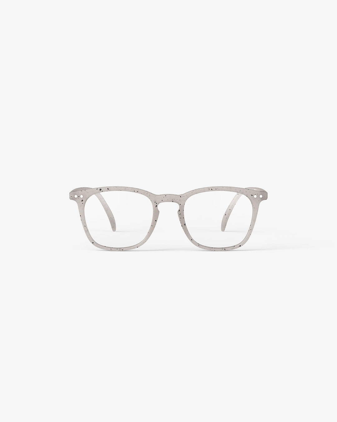 Izipizi Collection #E glasses have a large, structured trapezium shape. These reading glasses for presbyopia comply with the European standards for non-prescription glasses (NF EN 14139) and with the international standards for prescription glasses (IS0 12870)