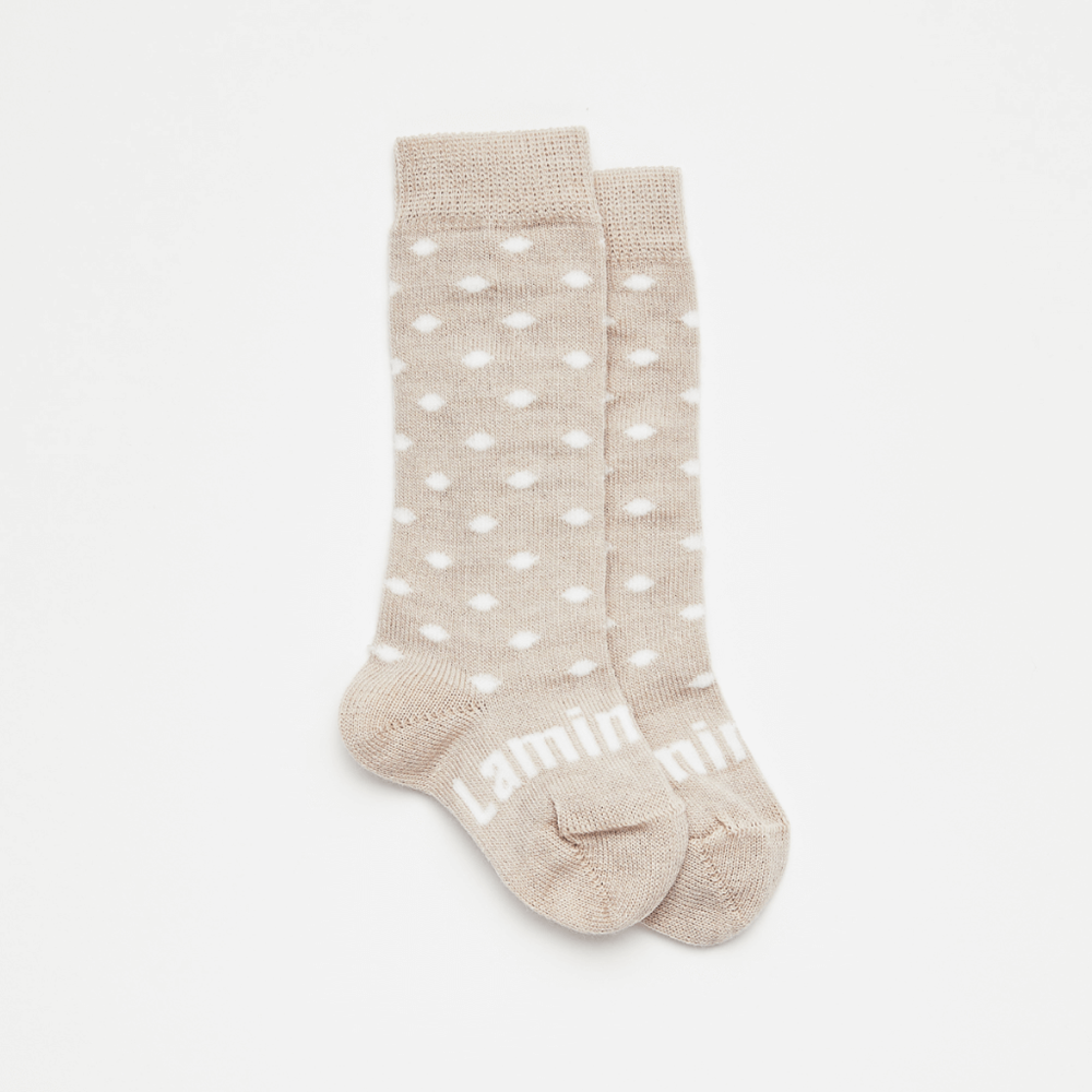 Truffle - Oatmeal with natural spots knee high merino socks.