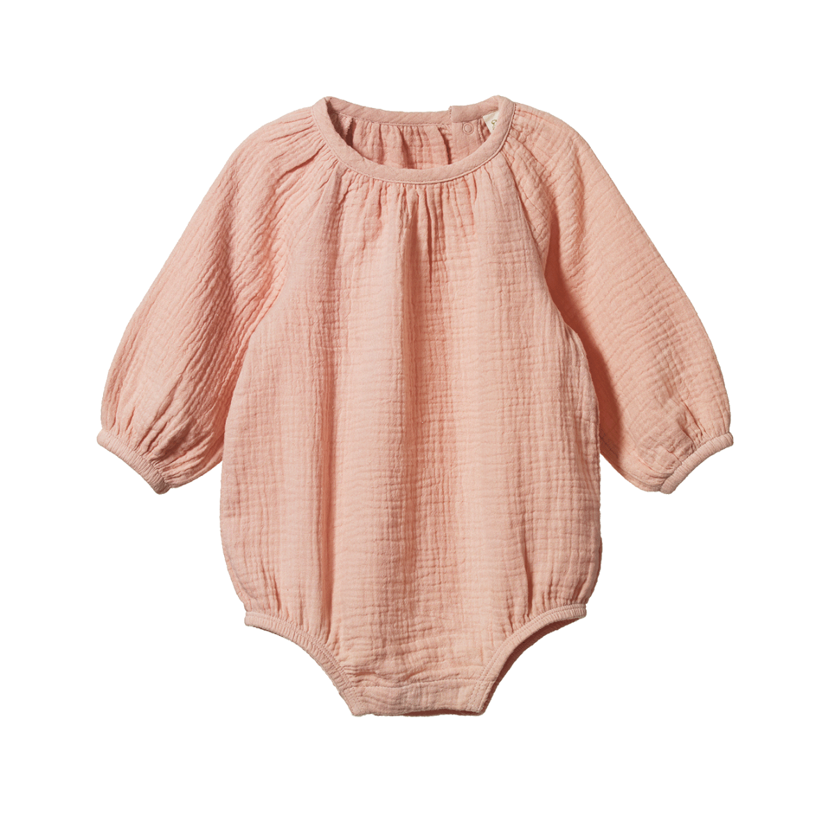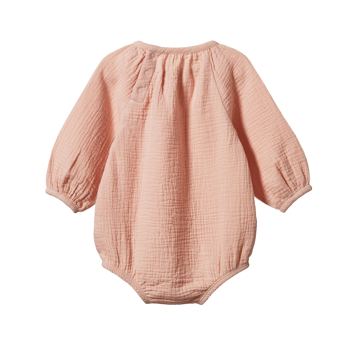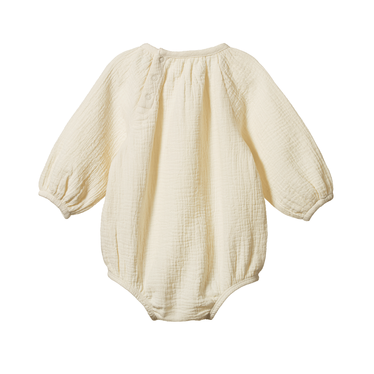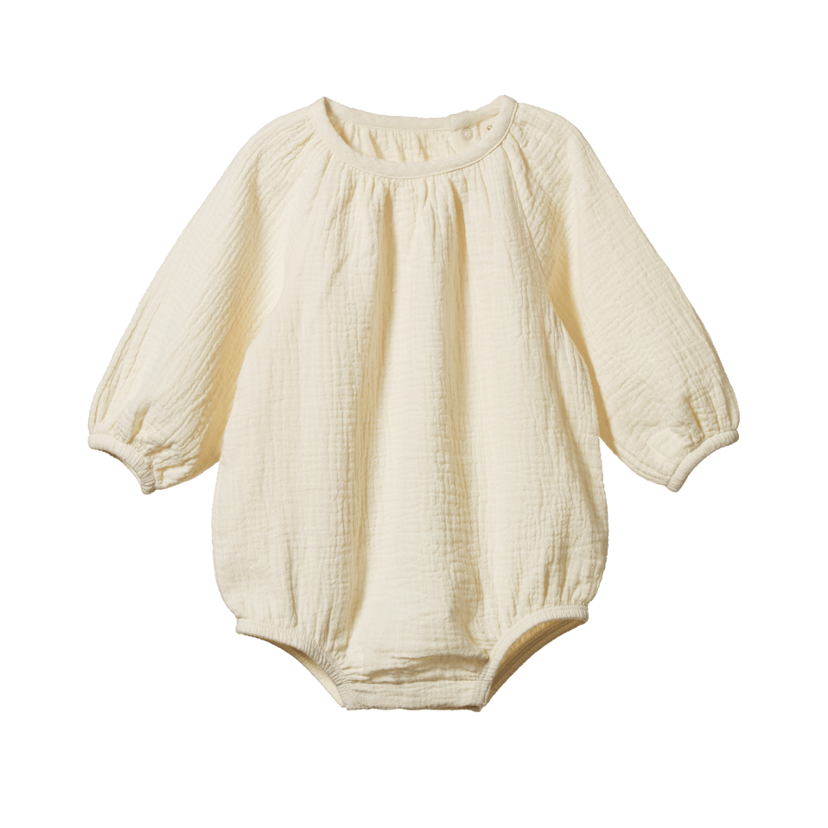 Our Meadow Bodysuit is a beautiful and special style that can be paired with stockings or worn by itself on warmer days. Made from 100% organic cotton muslin, this bodysuit features YKK dome closure at the back shoulder and crotch, a gathered neckline with a binding finish and raglan sleeves with elastic hems for comfort.