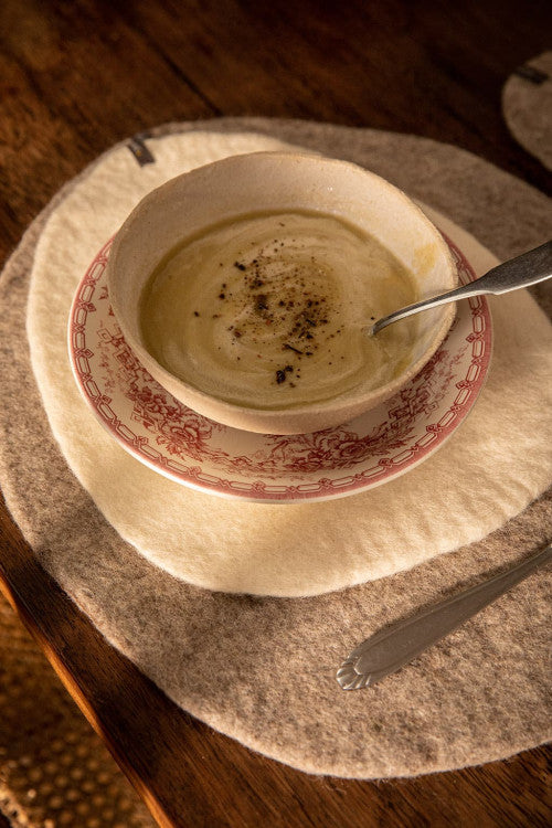 PLAIN PEBBLE PASTILLE - With its irregular and natural shape, the PLAIN PEBBLE PASTILLE in woollen felt can be used in many ways: beneath a glass, to rest under an object or a vase, to hang photos on, or even underneath a plate thanks to the isolating properties of felt. Crafted by artisans in our Nepalese workshops, the pebble pastille and its different variation in sizes will bring a stylish touch to your interior.