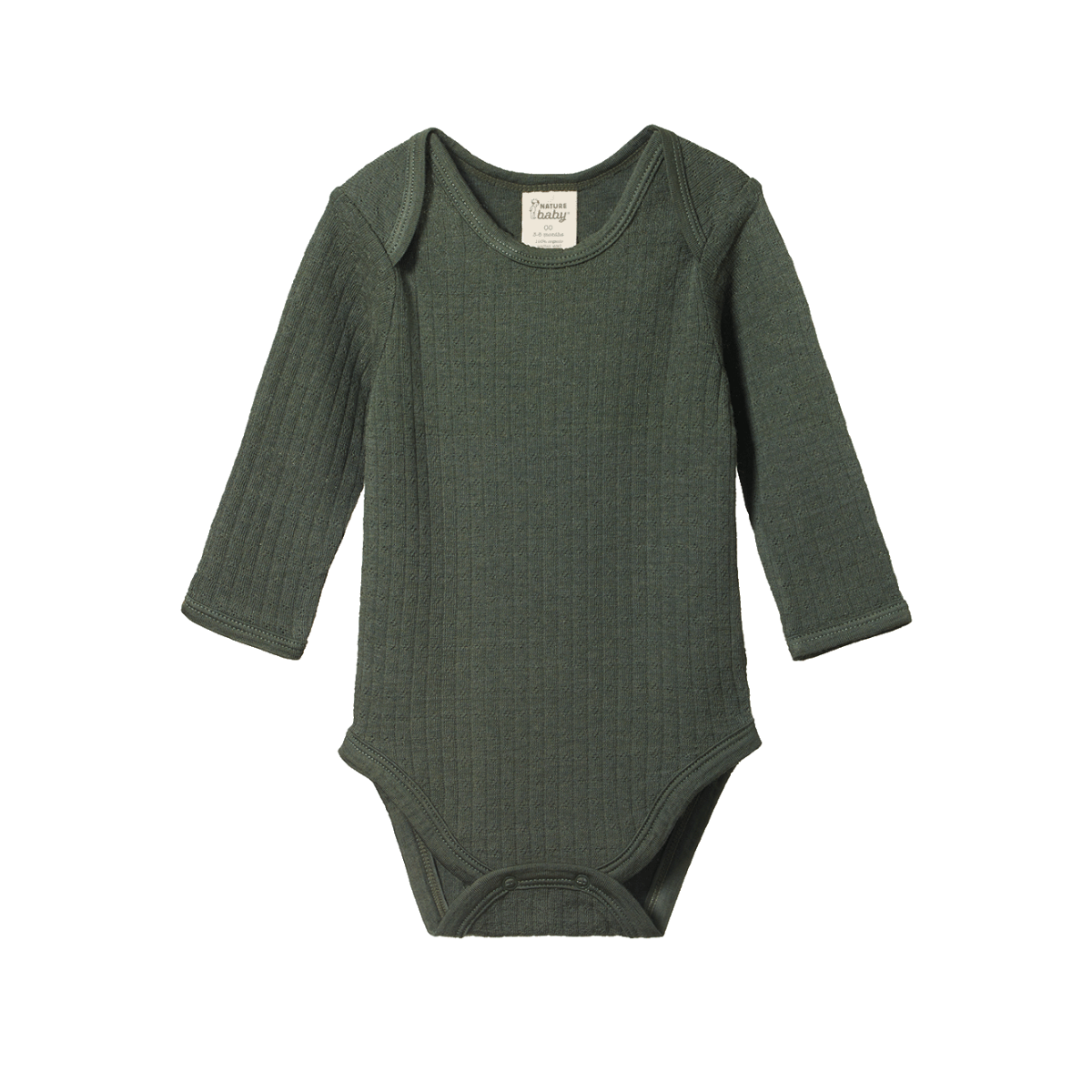 Our classic style bodysuit made in new beautiful merino pointelle fabric. This delicate knitted fabric has a nostalgic quality and the soft merino wool will keep baby cosy and warm. The perfect layering piece year around.