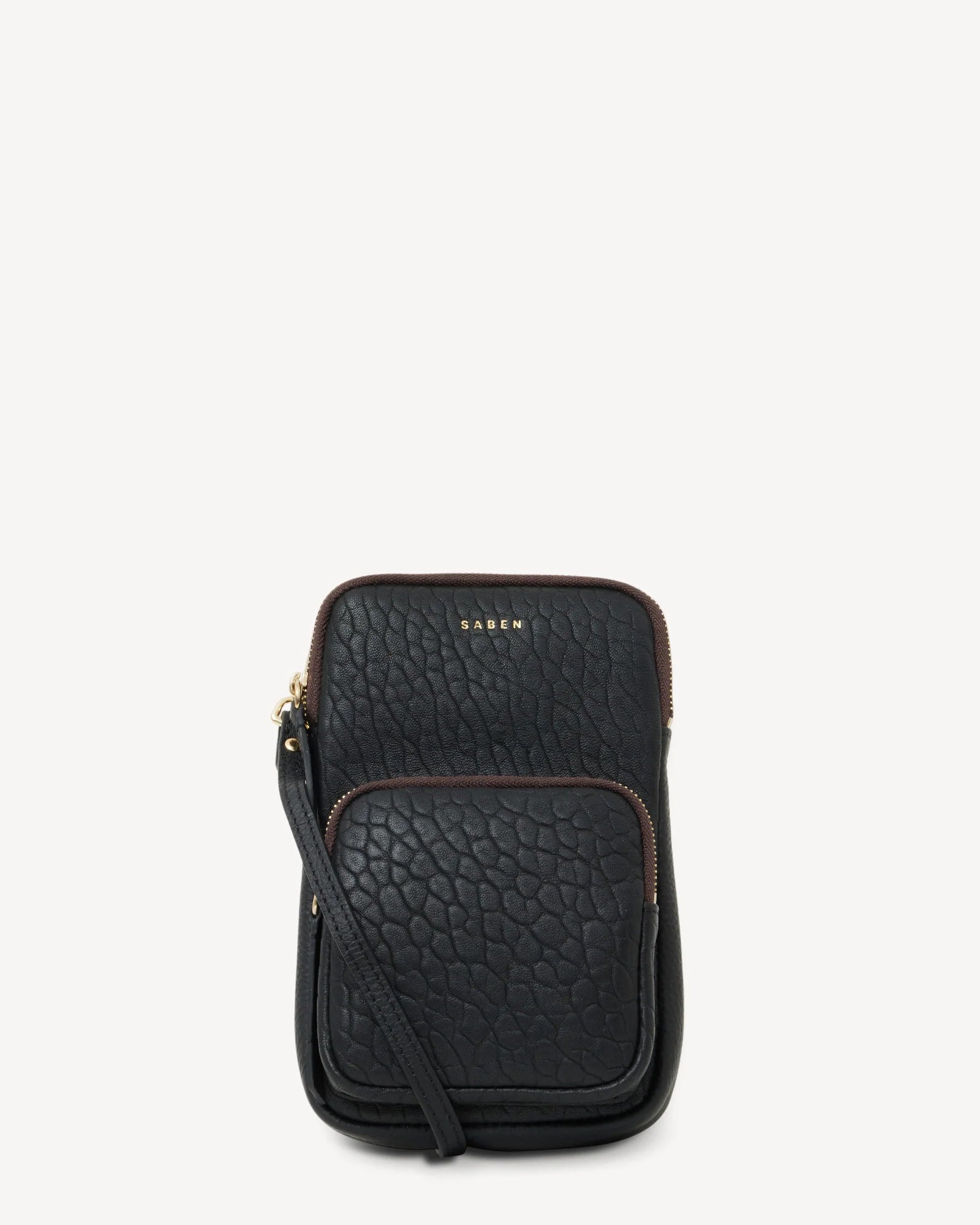 - Constructed in black pebbled leather