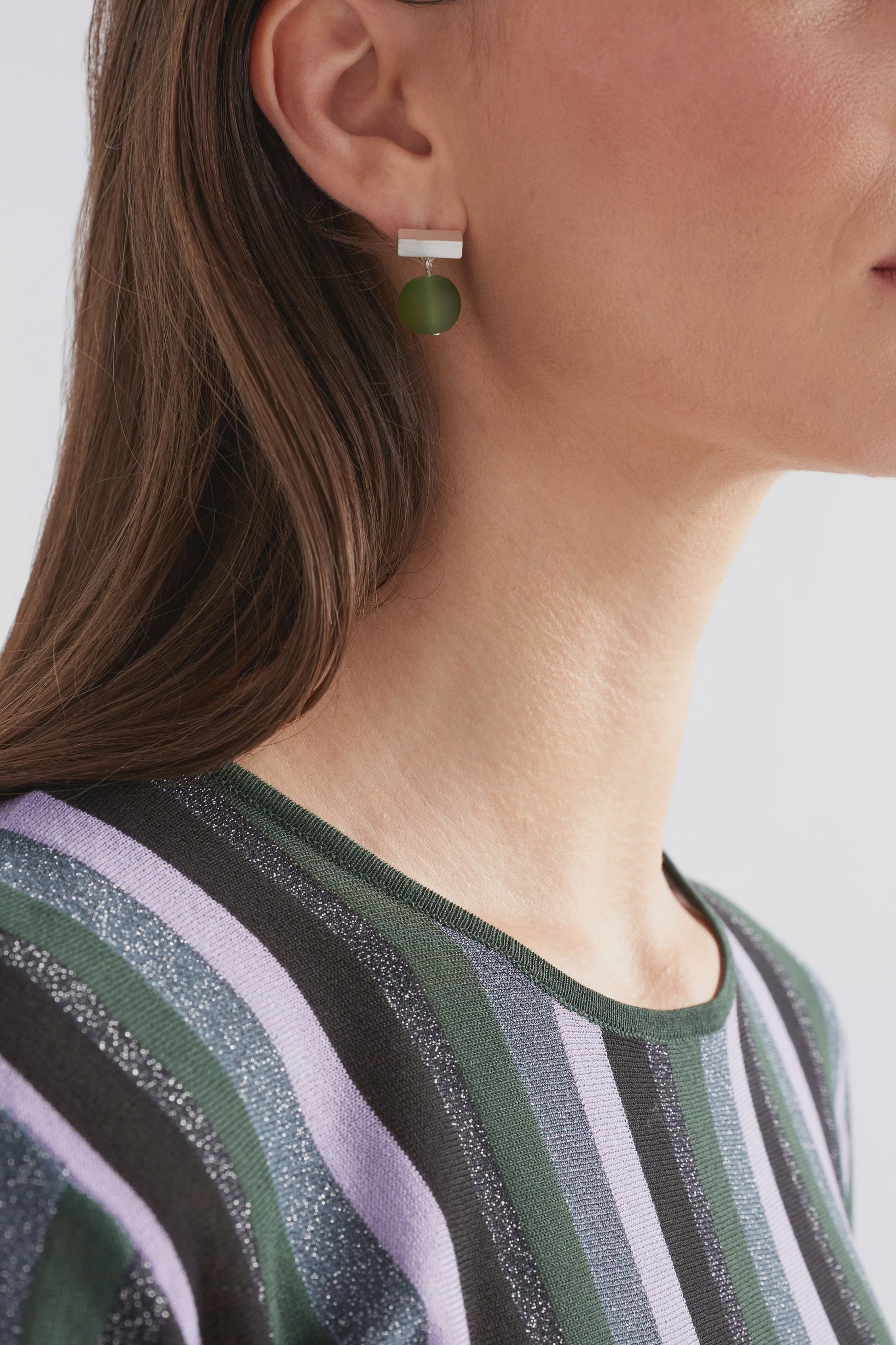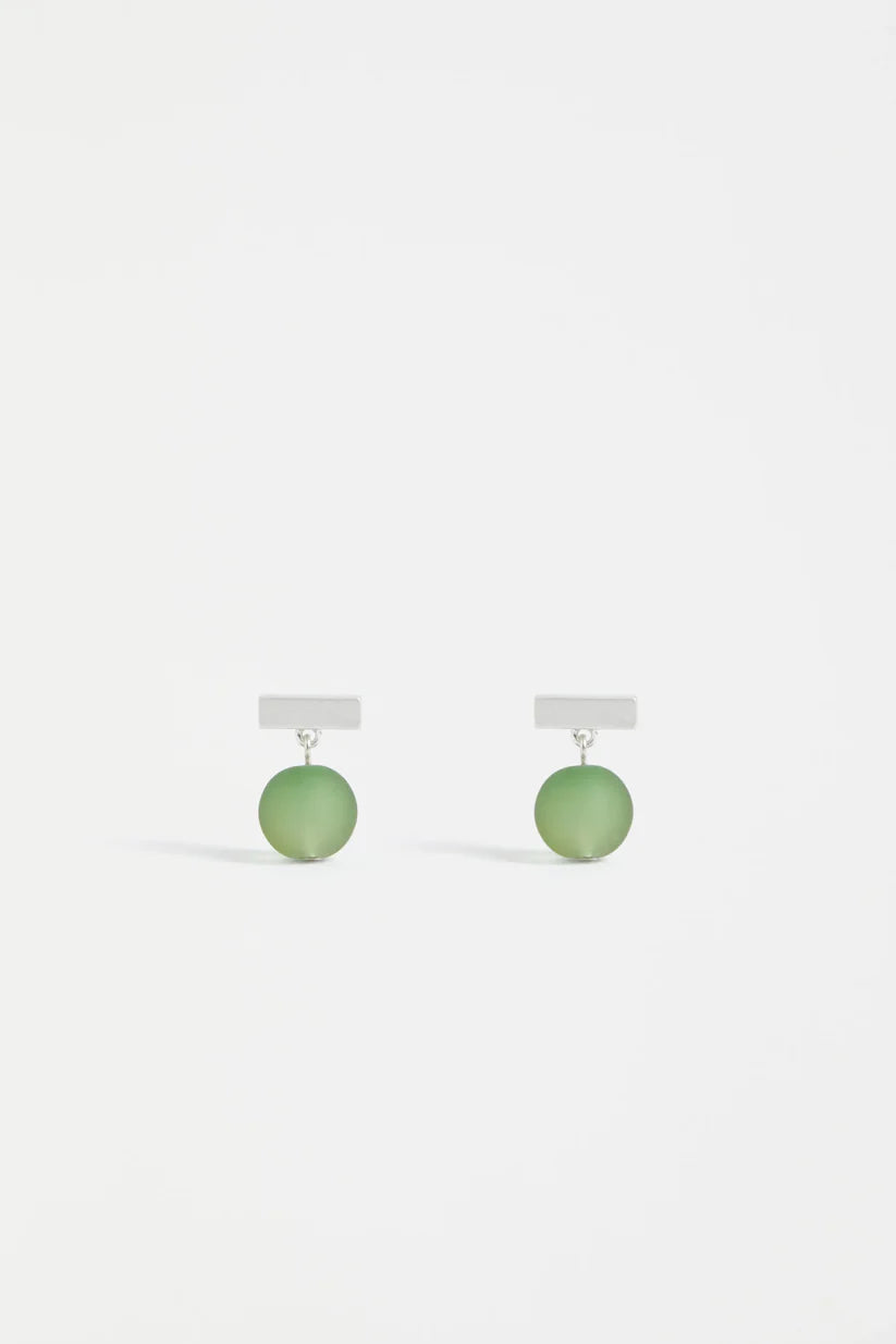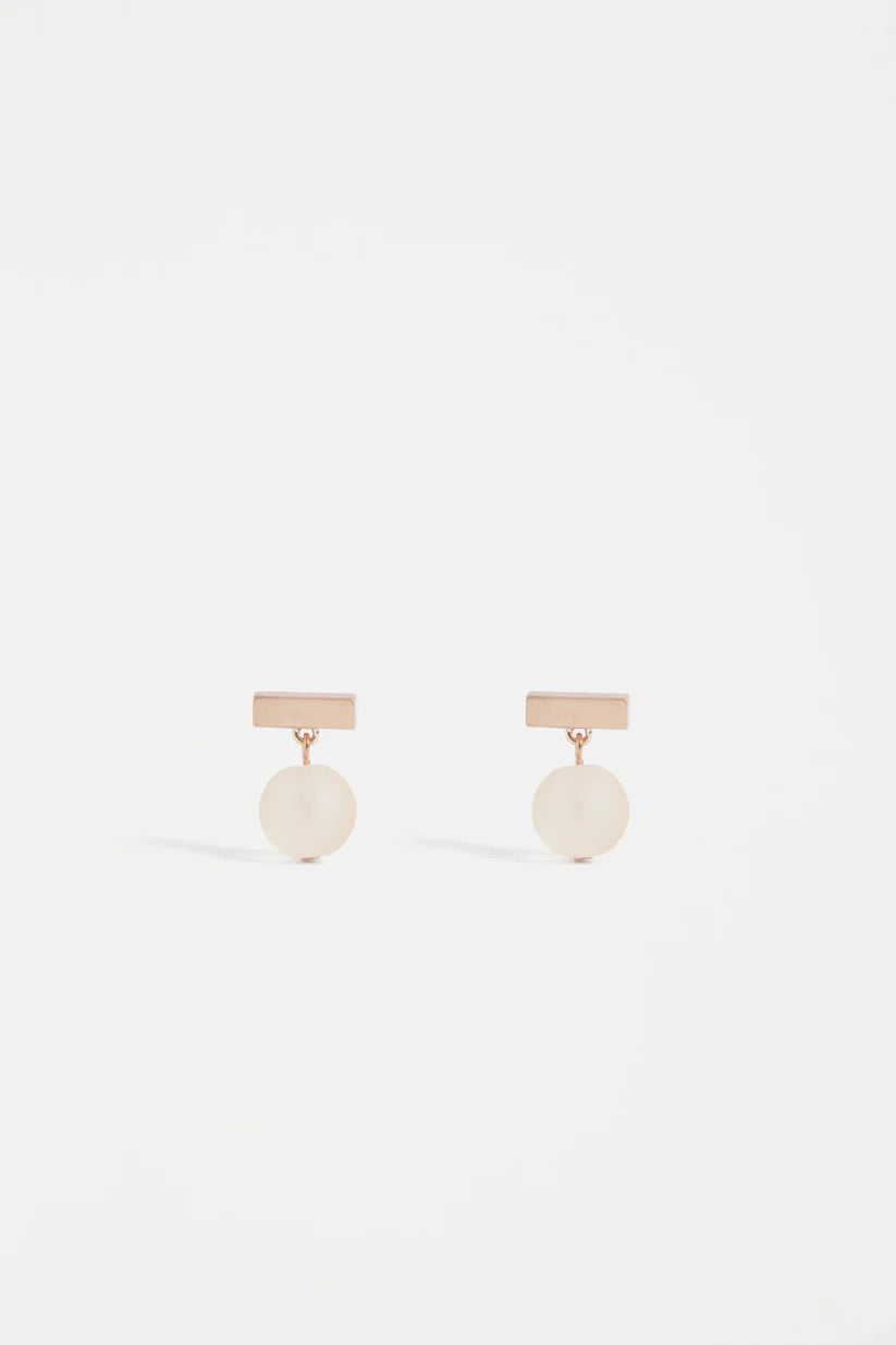 A minimalist design with subtle movement, this small drop earring features a brushed metal bar paired with a frosted glass bead. The bead's pastel colours bring a soft pop to any look, while the jump ring allows it to move effortlessly. They’re the perfect finishing touch, bringing a quiet sophistication to your day or night. Available in Rose Gold and Silver, these earrings are a sleek, versatile addition to your collection.