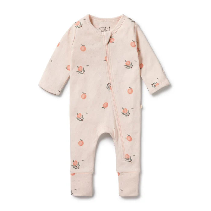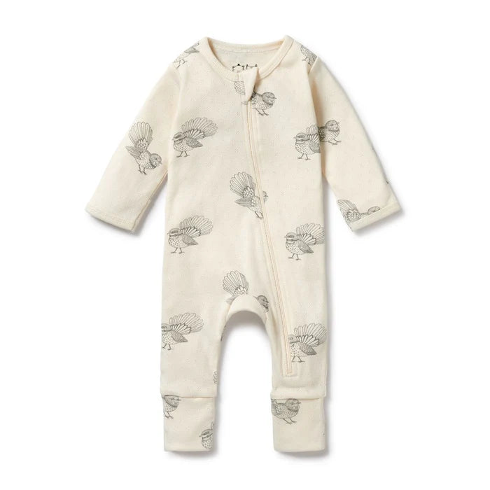Keep your newborn comfy and cozy with this practical yet adorable forever ferns organic pointelle zip suit with feet. The design features a fold over mitten (Sizes newborn to 000) to protect baby's face from little fingernails, and the option of a footed foot for growing bodies. Crafted from GOTS certified organic cotton pointelle, it's gentle on baby's sensitive skin, and extra handy when having to make nappy changes. Features a gorgeous hand-illustrated print.